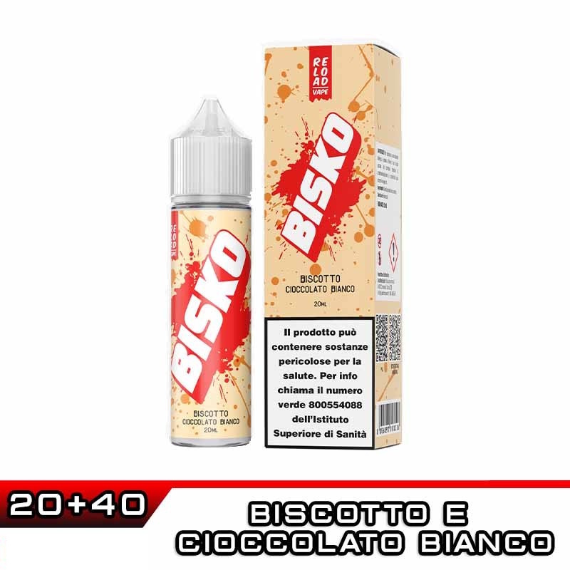 BISKO CIOCCOLATO BIANCO è un Liquido Sigaretta Elettronica formato Aroma Scomposto 20ml in 60 ml, un Dolce e Cremoso realizzato da Reload Vape.