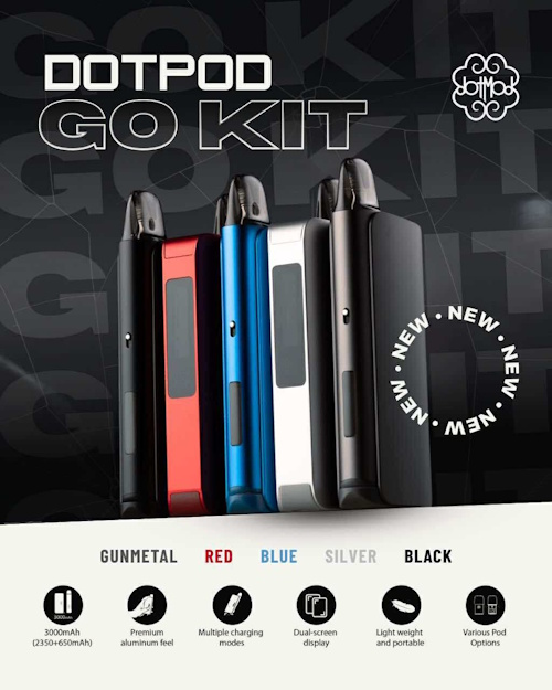 DotPod GO è uno Starter Kit Completo per Svapo MTL realizzato da DotMod, composto da Pen 650mAh e PowerBank Magnetico da 2350mAh, per un totale di 3000mAh, garantendo così uno svapo duraturo.