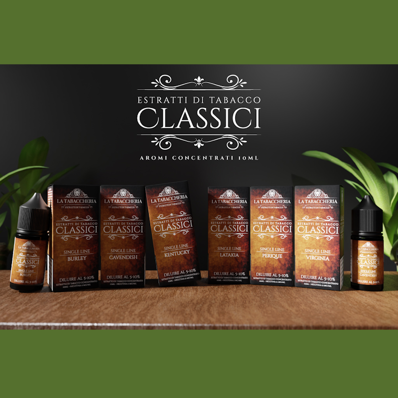 Disponibili ed in esclusiva ai Corner Point La Tabaccheria da Svaporotondo a Monterotondo (Roma) tutti gli Aromi Concentrati di La Tabaccheria della Linea ESTRATTI DI TABACCO Classici: questi concentrati sono caratterizzati dall’uso di componenti aromatiche organiche estratte da foglie di vero tabacco processate tramite esclusivi processi di estrazione brevettati da La Tabaccheria che consentono di preservare le sfumature aromatiche dei Tabacchi migliori, mantenendo il prodotto finale pulito, con basso impatto sulle resistenze.