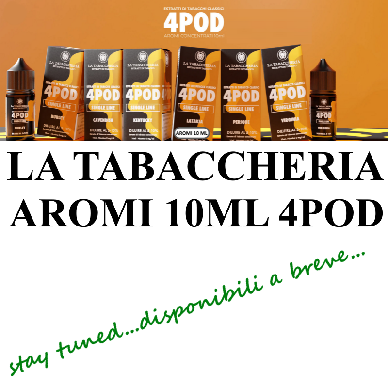 Gli Aromi La Tabaccheria 4POD sono Estratti di Tabacco adatti anche a Sigarette Elettroniche Pod Mod e Atomizzatori non rigenerabili: grazie alla formula a base di Tabacco Organico purificato garantiscono lunga durata di resistenze, Coil e Pod integrate.