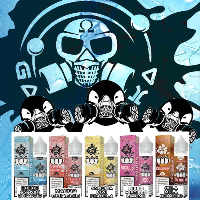 Linea I PINGUINI dal sapore Fruttato Fresco in formato Shot 20 ml in 60 ml realizzato da Galactika.