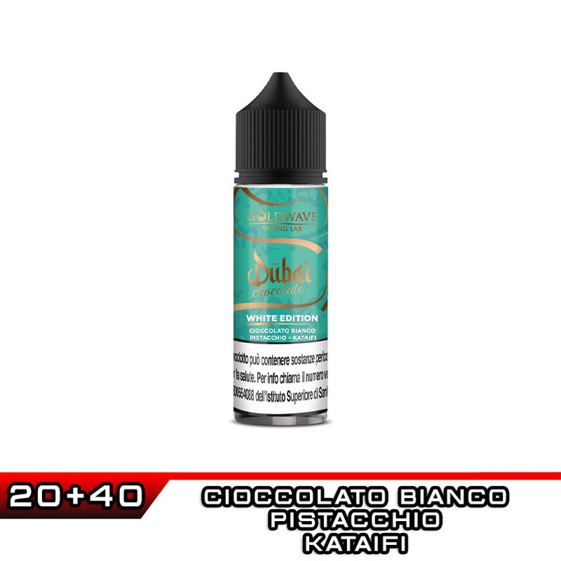 WHITE EDITION è un aroma Sigaretta Elettronica della Linea DUBAI CHOCOLATE formato Shot 20ml in flacone 60 ml realizzato da GOLDWAVE.